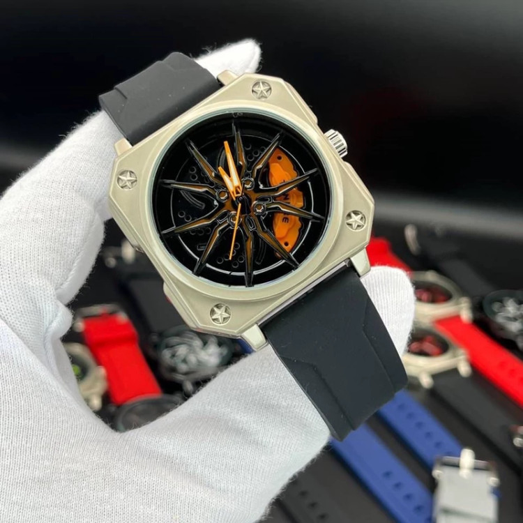 ساعت مچی رینگی مربع رابر نارنجی مشکی 06