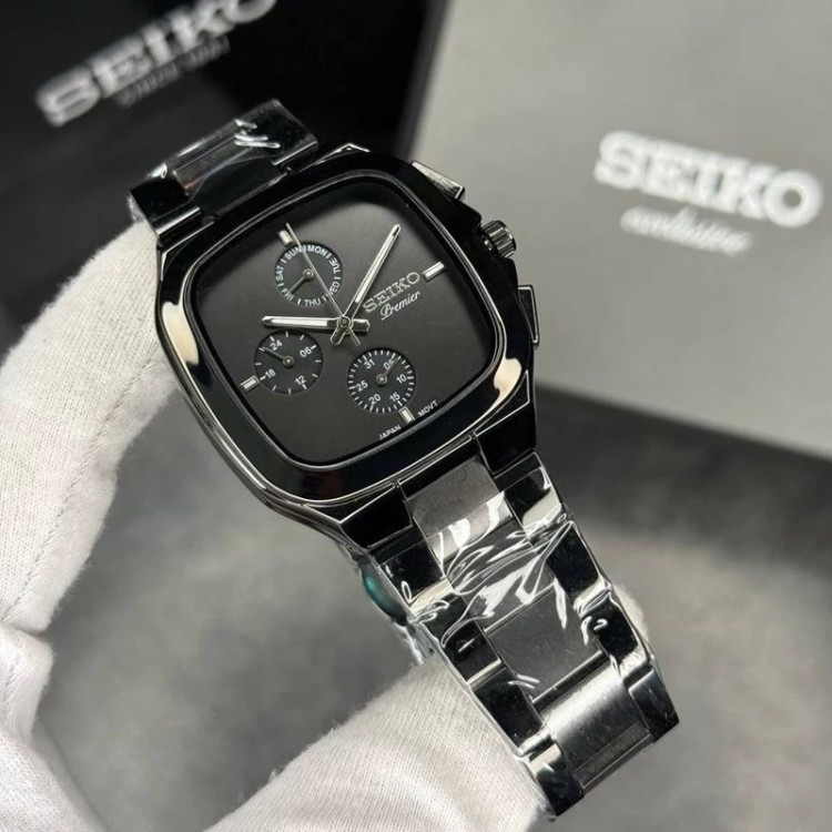 ساعت مردانه سیکو فول تایم چهارگوش استیل فول مشکی