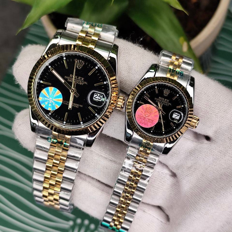 ساعت رولکس دیت جاست دورنگ طلایی مشکی خطی