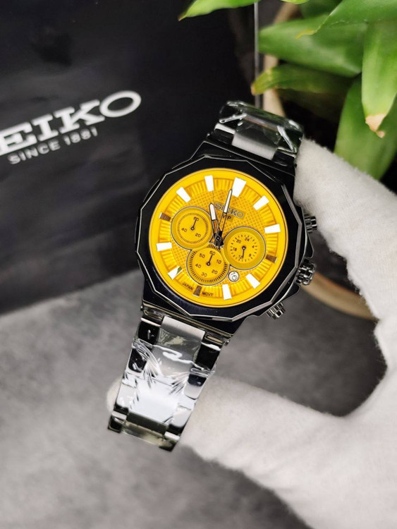 ساعت سیکو وی آی پی کرنوگراف مردانه مشکی زرد