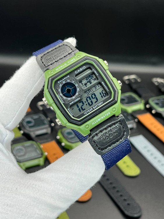 ساعت کاسیو جهان نما برزنتی آبی سبز