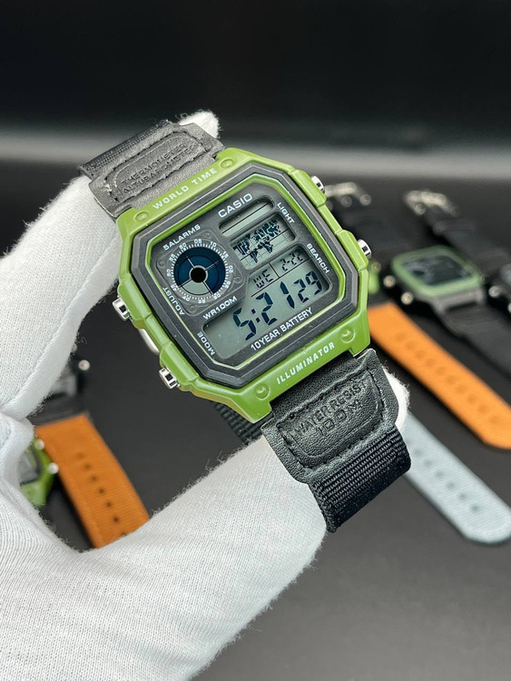 ساعت کاسیو جهان نما برزنتی مشکی سبز