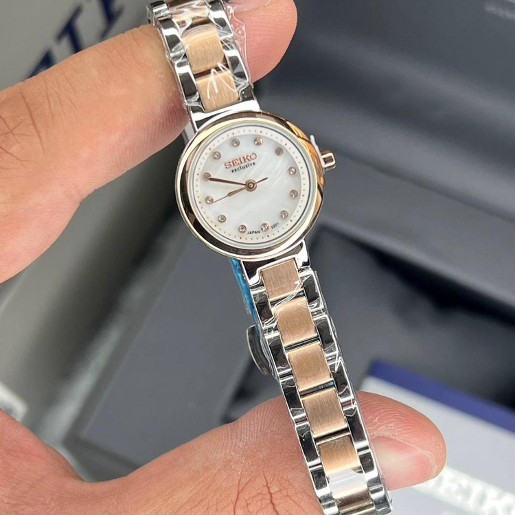 ساعت سیکو زنانه SEIKO EXCLUSIVE گرد سفید فلزی دورنگ رزگلد