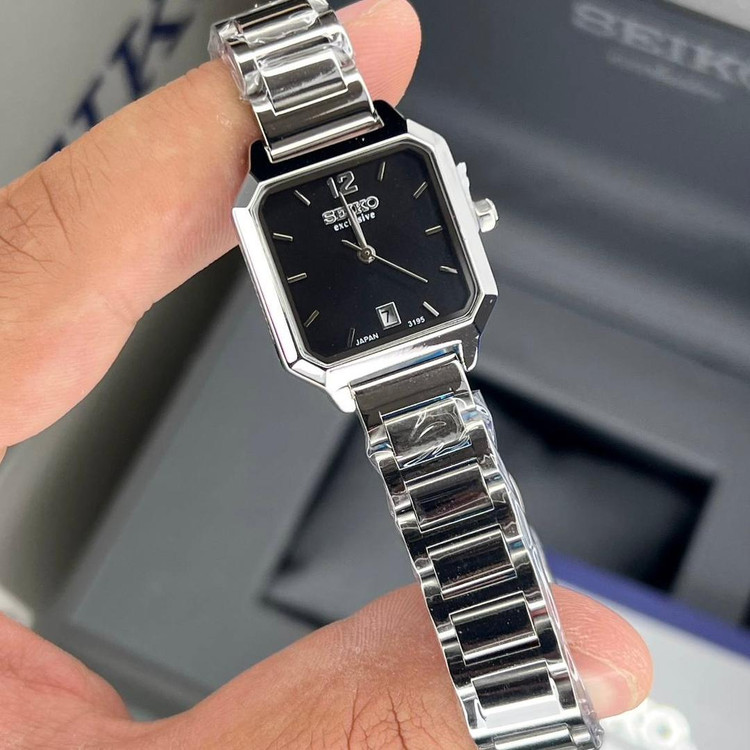 ساعت سیکو زنانه SEIKO EXCLUSIVE مربع مشکی فلزی نقره ای