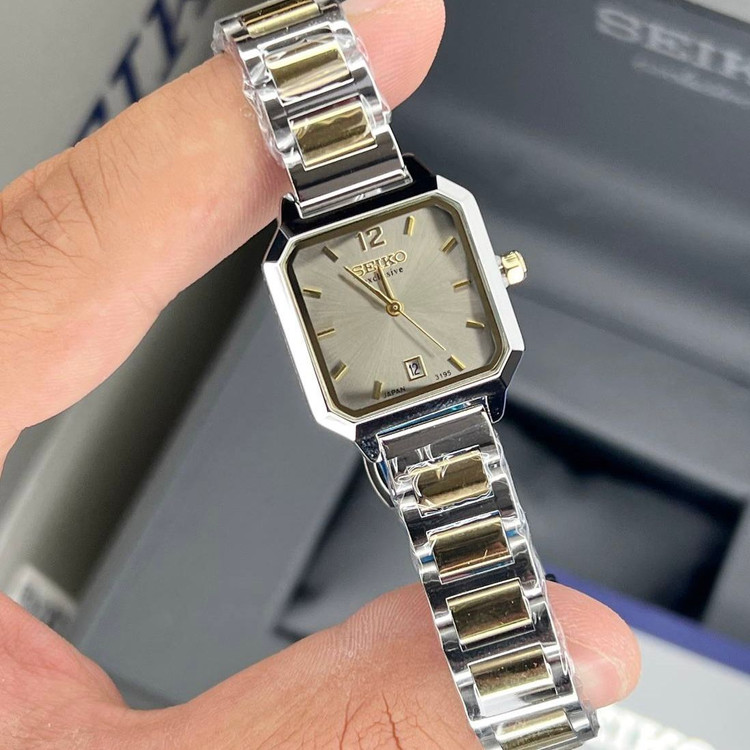 ساعت سیکو زنانه SEIKO EXCLUSIVE مربع کرم فلزی دورنگ
