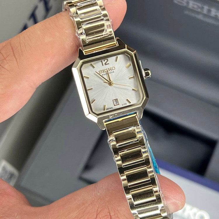 ساعت سیکو زنانه SEIKO EXCLUSIVE مربع نقره ای فلزی طلایی
