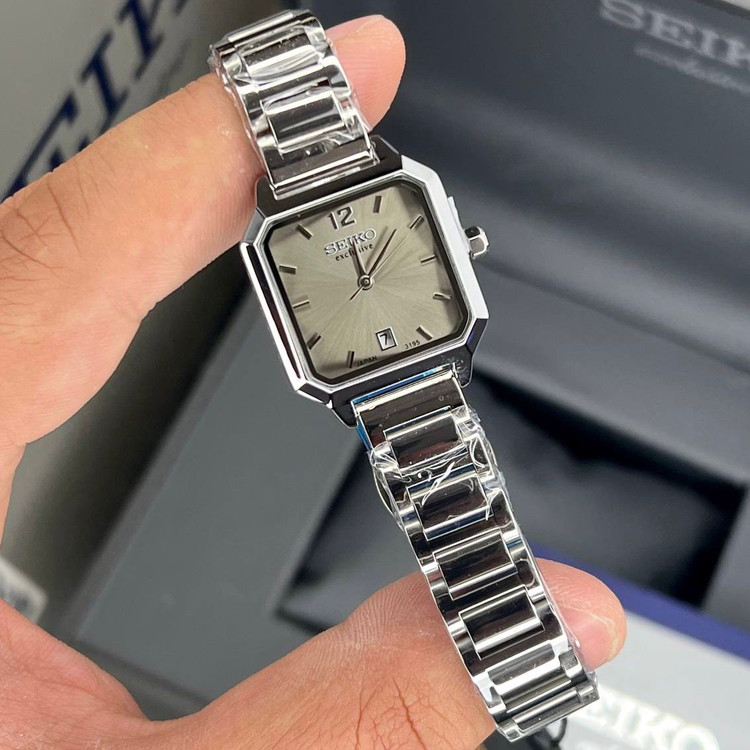 ساعت سیکو زنانه SEIKO EXCLUSIVE مربع کرم فلزی نقره ای