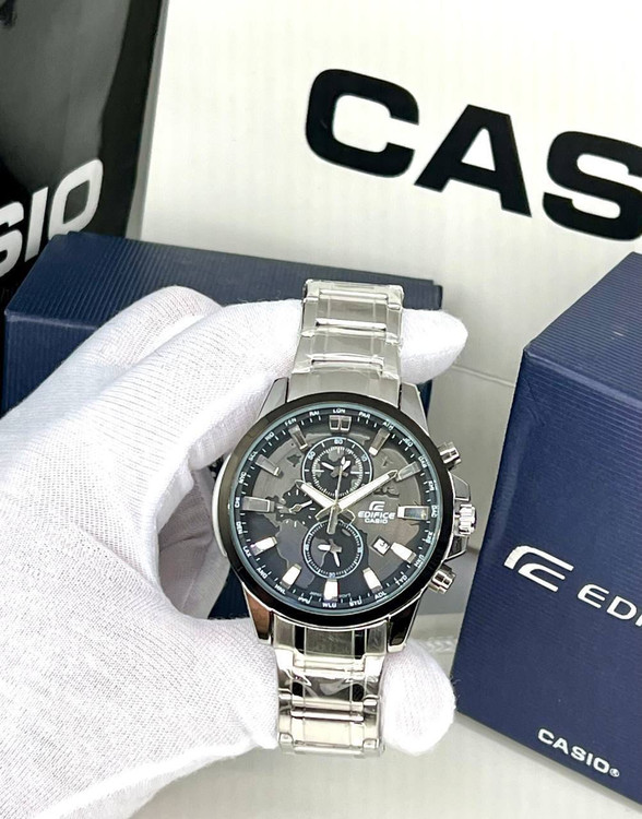 ساعت مردانه کاسیو ادیفایس سه موتور تایوانی مشکی نقره ای ۰۲