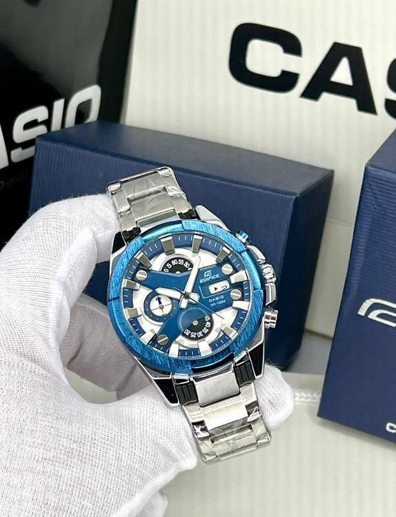 ساعت مردانه کاسیو ادیفایس سه موتور تایوانی آبی نقره ای ۰۷