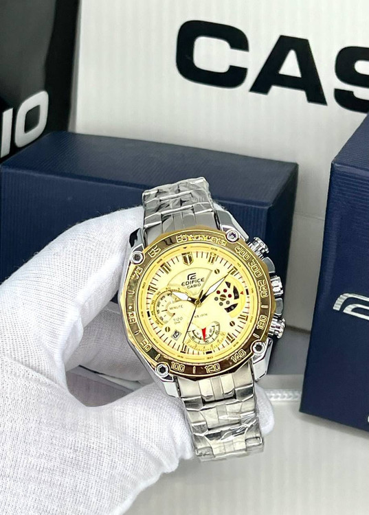 ساعت مردانه کاسیو ادیفایس سه موتور تایوانی طلایی نقره ای