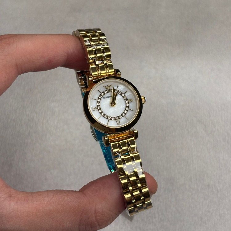 ساعت زنانه امپریو آرمانی ریز سفید طلایی وسط نگین