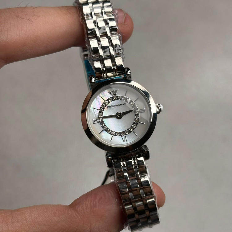 ساعت زنانه امپریو آرمانی ریز سفید نقره ای وسط نگین