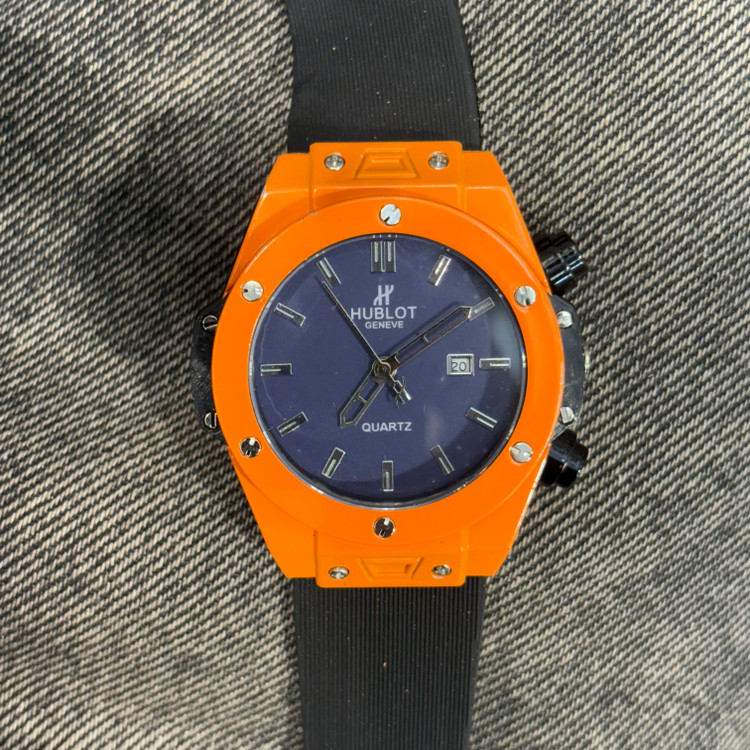 ساعت هابلوت تک موتور پشت شیشه نارنجی سورمه ای