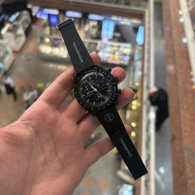 ساعت امگا سواچ بند جدید رابر 2026 مشکی ماه Misson to moon